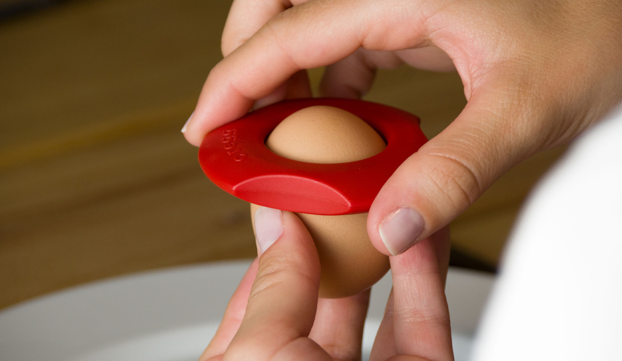 - Legen Sie Cregg mit den Schneideringen auf das Ei, das Sie köpfen möchten.